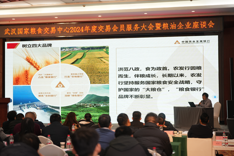 热忱服务,一片赤诚。随后农业发展银行湖北省分行粮棉油处客户经理刘小妹介绍了针对粮油企业的融资产品。交易中心交易部代书阳同志详细解读了湖北省地方储备粮竞价销售交易规则的修订以及交易监管系统运用的实例。据悉明年农发行湖北省分行与交易中心还将进一步加强合作,打造交易融资创新举措,服务全省粮油企业。